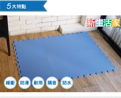 【新生活家】10mm素面地墊藍色40入