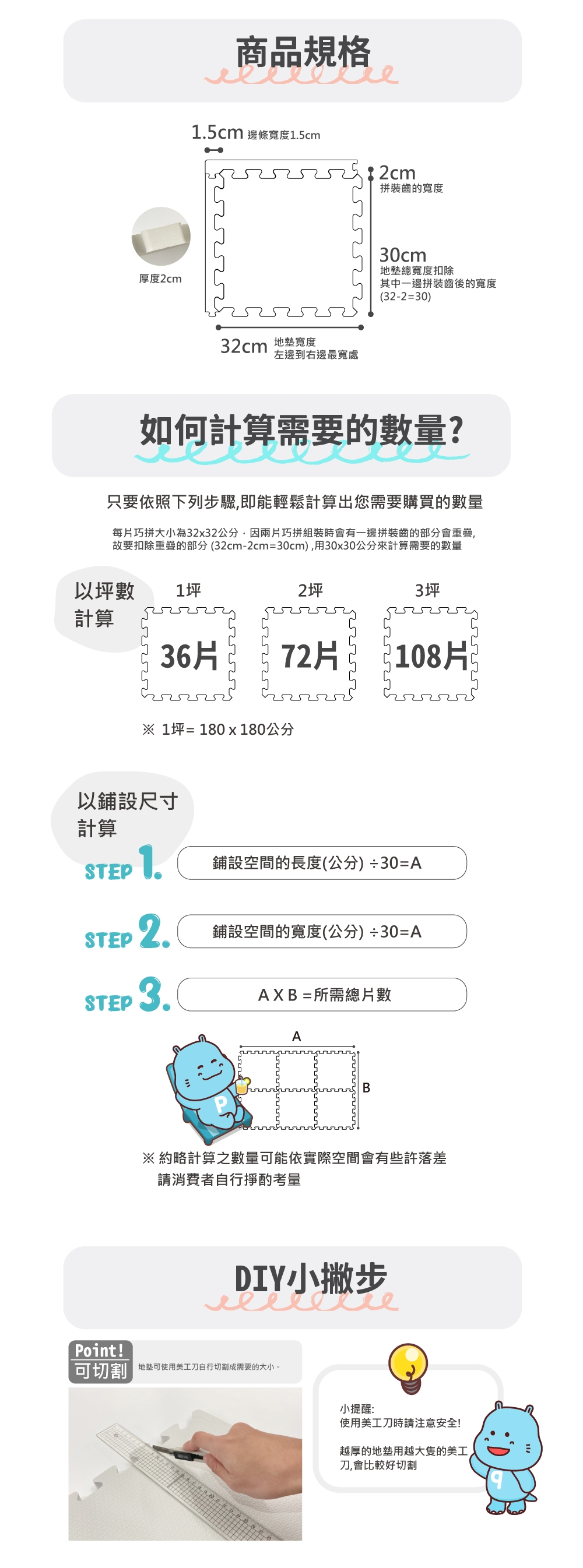 【新生活家】EVA運動安全地墊(藍色62x62x1.3cm12入)