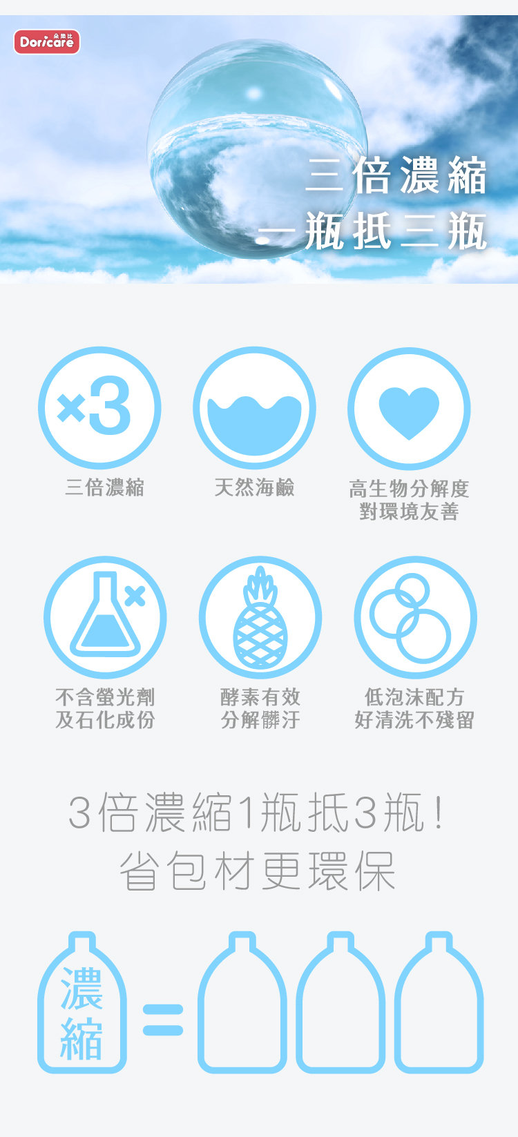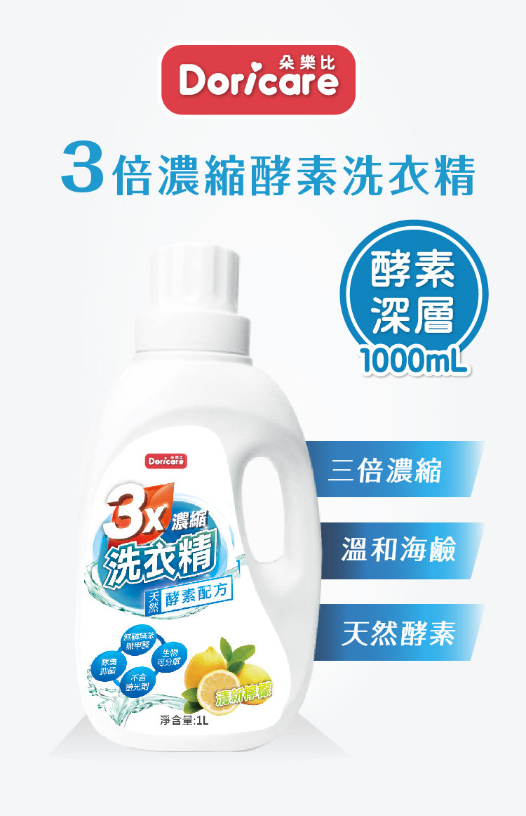 【Doricare朵樂比】三倍濃縮酵素洗衣精(1000mlX3瓶)