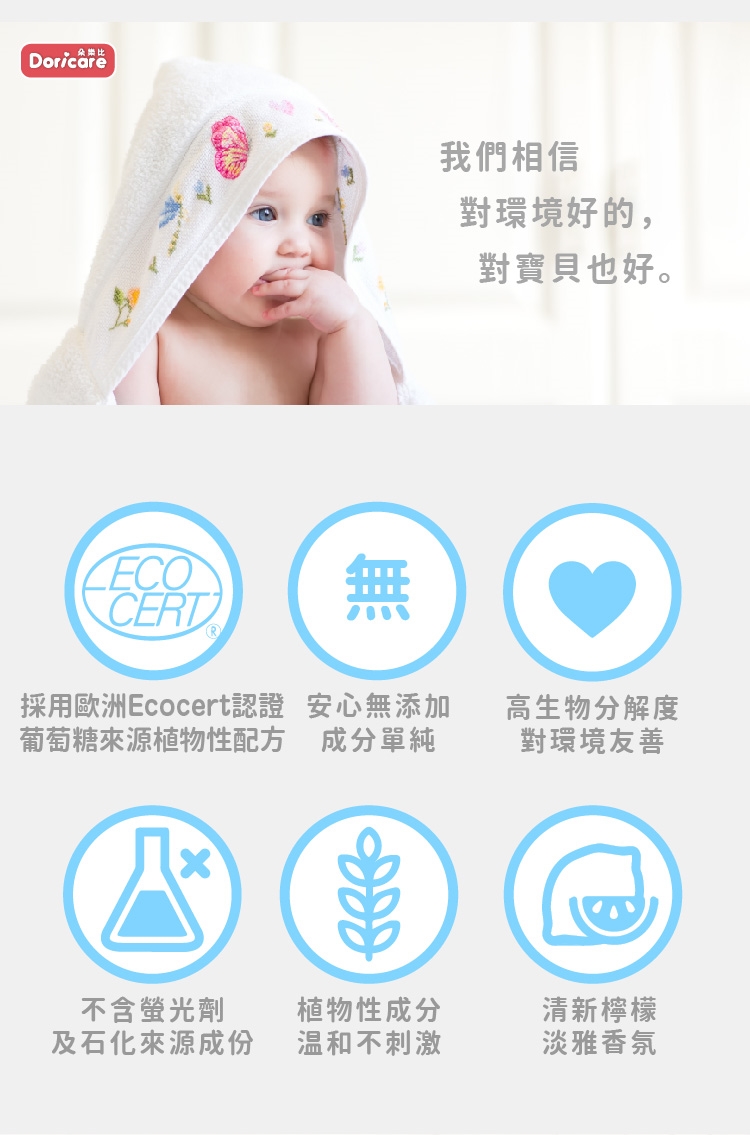【Doricare朵樂比】嬰兒中性茶樹濃縮洗衣精X2瓶+奶瓶蔬果洗劑X1瓶