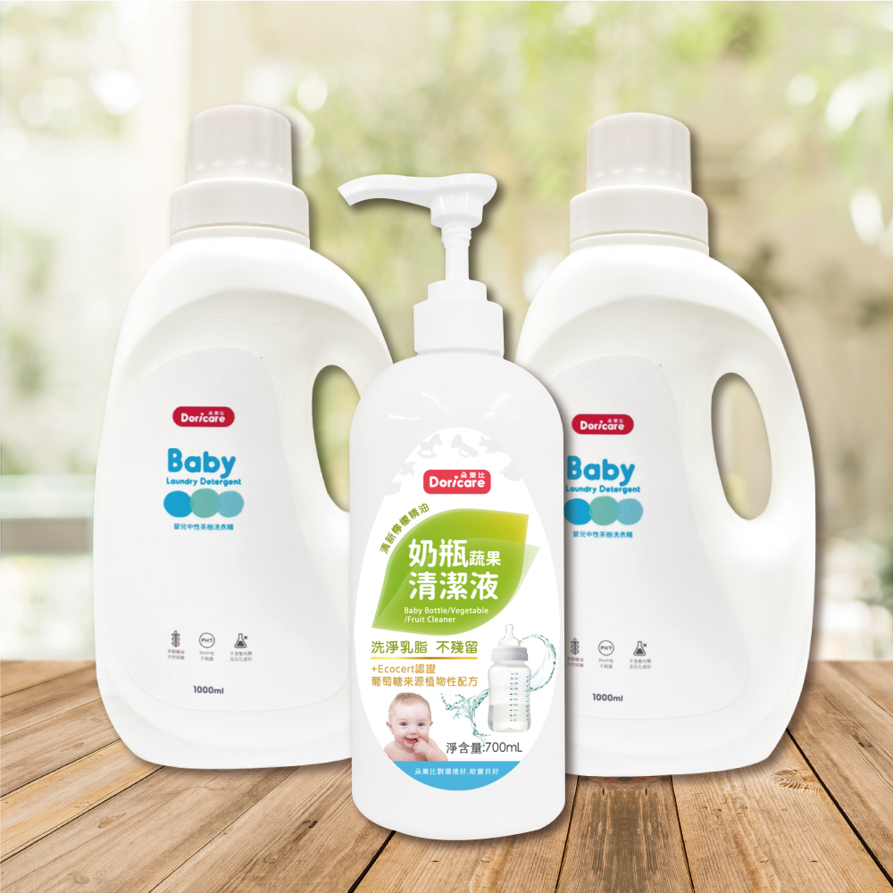 【Doricare朵樂比】嬰兒中性茶樹濃縮洗衣精X2瓶+奶瓶蔬果洗劑X1瓶