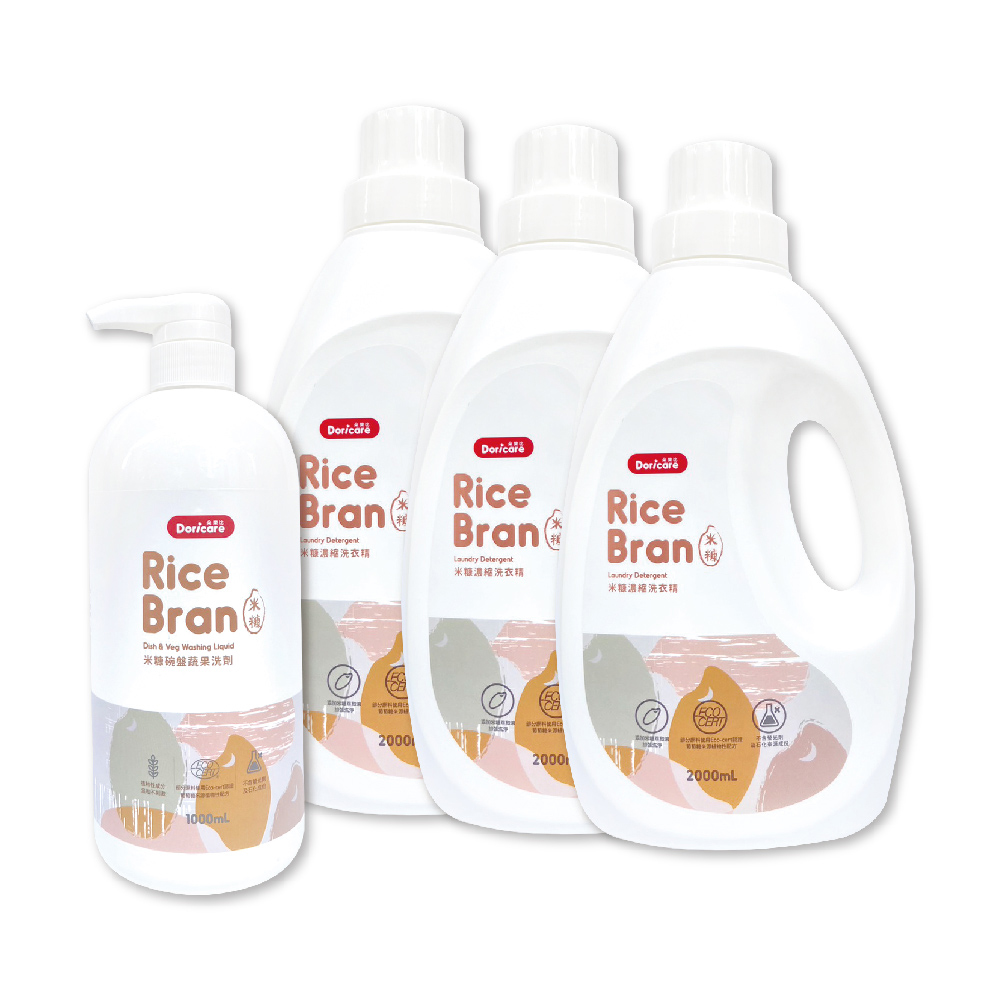 【Doricare朵樂比】米糠濃縮洗衣精X3瓶+米糠洗潔精X1瓶 贈【Doricare朵樂比】私密衣物手洗精200ml